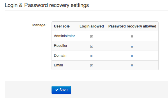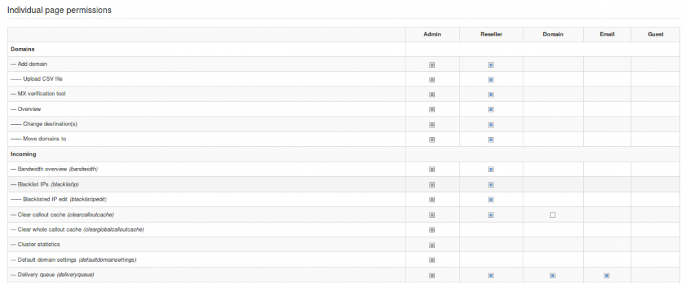 Dengan pengaturan ini Anda dapat mengelola hak akses untuk level pengguna yang tersedia.