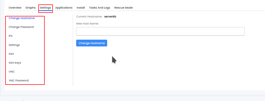 4. Pilih menu Settings pada halaman dashboard. Lalu, pilih menu Change Hostname.