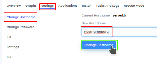 5. Masukkan hostname baru sesuai keinginan kita di kolom yang tersedia. Lalu, klik Change Hostname.