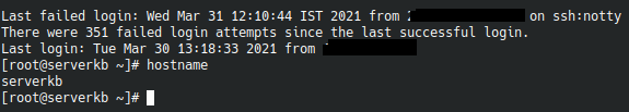 8. Tunggu sekitar 5-10 menit hingga server aktif kembali. Cek hostname dengan menjalankan command #hostname seperti gambar di bawah.