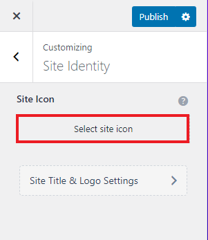 3. Klik Select Site Icon. Lalu, pilih logo atau ikon favicon yang ingin kita gunakan.