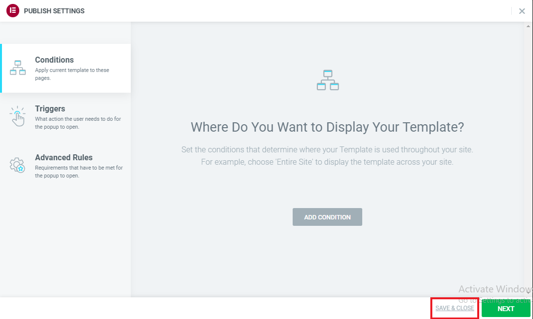 7. Atur bagian Conditions, Triggers dan Advanced Rules sesuai keinginan. Lalu, klik Save & Close.