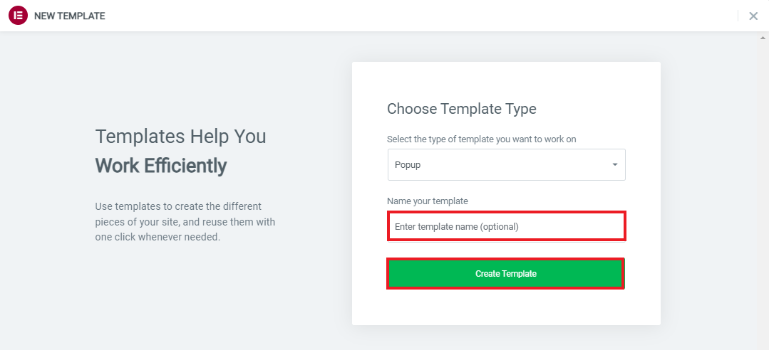 4. Masukkan nama template pop up sesuai keinginan. Lalu, klik Create Template.