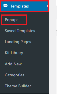 2. Pilih menu Templates pada menu bar. Lalu, pilih Popups.
