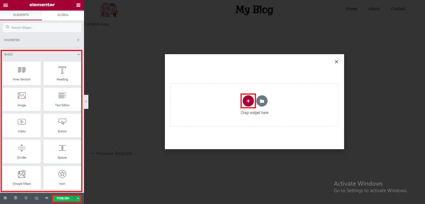 6. Klik tanda plus di sebelah kanan untuk menambah section, lalu drag and drop elemen di sebelah kiri. Klik Publish atau Update untuk menyimpan perubahan.