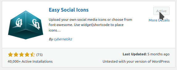 3. Cari plugin Social Icons Widget. Lalu, install dan aktifkan.
