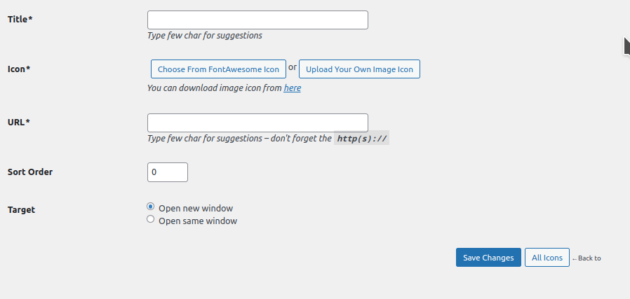 5. Masukkan judul dan URL sosial media yang kita inginkan. Lalu, pilih icon sosial media yang kita inginkan.