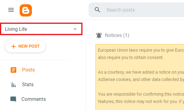 2. Pilih blog yang ingin kita export di bagian kiri atas.