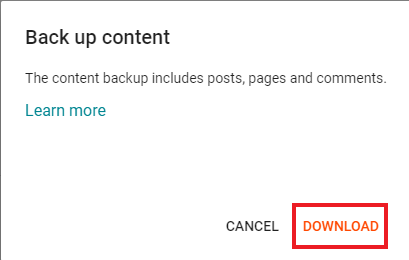 5. Klik Download dan file Blogspot akan ter-download secara otomatis dalam format .xml.