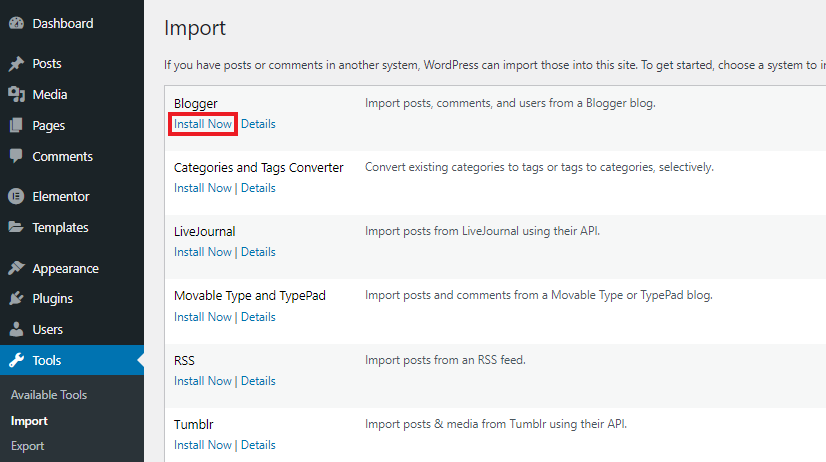 Langkah 2 – Import File Blogspot di WordPress